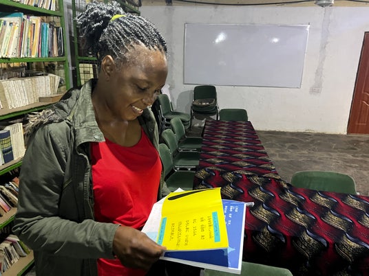ケニアやルワンダから届いた手紙を手渡す