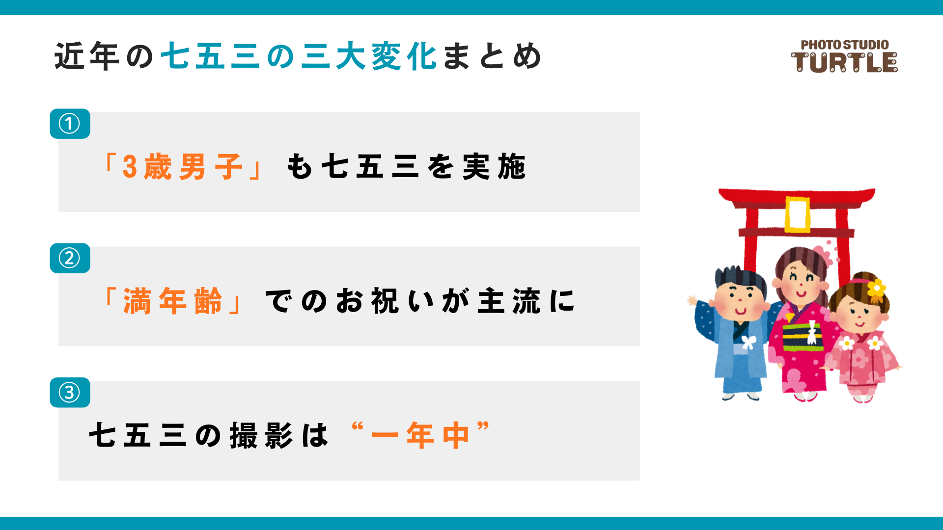 撮影時期の多様化・3歳の男の子の七五三の増加・“満年齢”でのお祝いが拡大傾向