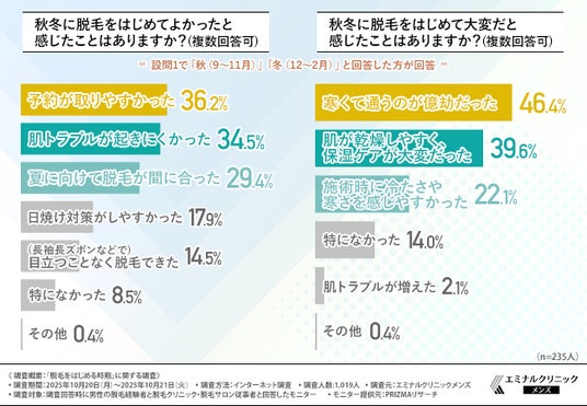 脱毛をはじめた季節、約半数が「秋」「冬」と回答!秋冬に脱毛をはじめてよかったこととは?