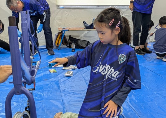 本イベントは、アビスパ福岡のシャレン!(社会連携活動)の一環で、古くなった自転車をペンキで塗り直し、参加者の手で「アビスパ福岡チャリチャリ」へとアップサイクルするワークショップを通し、環境問題や循環型社会、SDGsへの理解を深めていただくきっかけとなることを目指したものです。