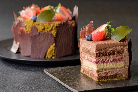 3段目:ラズベリージュレとピスタチオのムース、いちごとプラリネのエクレア、チョコレートのカヌレ