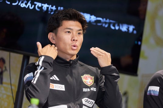 会がスタートすると、北澤豪さん・デフサッカー男女日本代表の林選手・國島選手が登場。11月開催のデフリンピックについて、國島選手は「今回の東京で行われるデフリンピックは、100年目というすごく大きな記念の大会になります。歴史的なタイミングで競技に出られることを嬉しく思います。」とコメント。今回のプロジェクトについて北澤さんは「生きている間に自分の国でデフリンピックを目撃できることは、そう無いタイミングなので、聞こえにくい人、聞こえる人たちも誰もがデフリンピックを見て感じたことを、世界に発信して行かなければと思いました。YYSystemのようなコミュニケーションツールは、メダルに近づける一つのシステムだと思います!」と期待を述べました。また、今後の目標や聴覚障害を持っている方に向けてのメッセージを問われると、林選手は「デフリンピックではサッカーを通して大会に参加するだけではなく、結果を残したいです。」と大会への意気込みを語り、國島選手は「一つの夢が阻まれても、諦めずに次の目標に向けて頑張りましょう。」とエールを送りました。