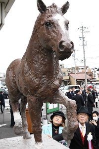 名馬ラブミーチャンの銅像完成 岐阜・笠松町役場前 馬主のドクターコパさんが寄贈