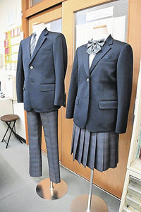 神戸中、新制服お披露目 来年度導入のブレザー、投票で決定 生徒がボタンデザイン
