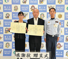 心肺停止の釣り客救命 郡上消防 髙橋さん夫妻に感謝状