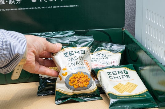 - ZENBパスタスナック:豆パスタをこめ油で揚げた、糖質オフ・脂質オフ・塩分オフ※8の罪なきスナック