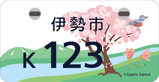 ナンバープレートに描かれているキャラクターは令和4年1月5日に伊勢市の花・木・鳥として制定したジングウツツジ、オヤネザクラ、イソヒヨドリをモチーフにしています。各キャラクターは、伊勢市の駅前子育て支援センターに展示されている壁画に描かれており、壁画の作者である絵本作家のtupera tuperaさんにご協力いただいて、ナンバープレートのデザインとなりました。