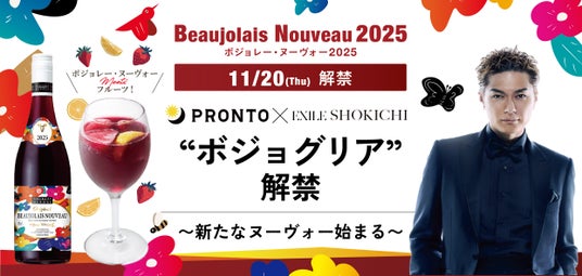 飲食チェーン「PRONTO (プロント)」や「ワインの酒場。 Di PUNTO (ディプント)」などを展開する株式会社プロントコーポレーション(本社:東京都港区、代表取締役社長:杉山和弘)は、2025年11月20日(木)解禁の 「ボジョレー・ヌーヴォー」とともに EXILE SHOKICHI氏監修の「ボジョグリア」を発売いたします。