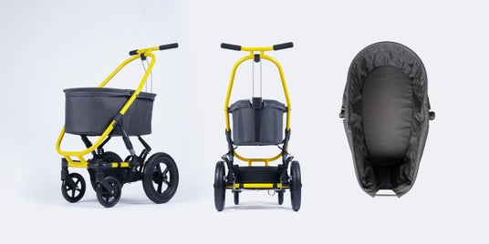 キュリオベビーカーに取替え可能な新ユニット。子育て後もペットカートや荷物用マルチカートとして活用可能。デザイン性と循環型社会への貢献を両立。