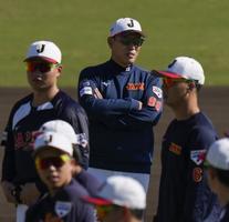 初日は牧(DeNA)や小園(広島)が内野ノックで俊敏な動きを見せ、打撃練習では森下(阪神)が力強い打球を飛ばした。ブルペンでは平良(西武)が坂本(阪神)を相手に投球練習した。合宿は12日まで。