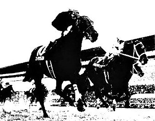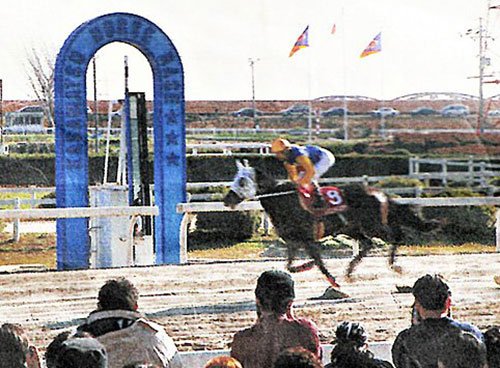 「笠松版・伝説の新馬戦」。800メートル戦で逃げたマエストロセゴビアのレコード駆け(47秒9)に屈して2着に終わった。岐阜新聞の敏腕カメラマンは、翌朝のスポーツ面を飾ろうと、ゴール前で「笠松に新たな怪物出現」の1枚を狙っていたが、当てが外れて悔しがった。ごみ箱行きになりそうな画像のコピーを頂いたのだが、今となってはお宝のゴールシーンとなったのである。