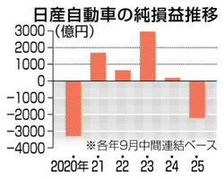 日産、赤字2219億円 9月中間 世界販売不振