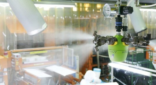 現場の加湿を行う際使用する加湿器、制御機器などを実演します。「触れても濡れない霧」をぜひご体感ください。