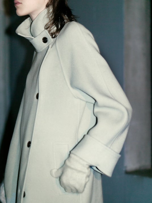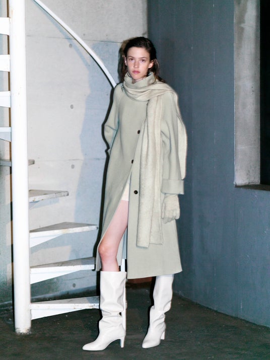 軽やかで暖かく、程よい厚みとハリのある質感でシルエットを美しくキープ。