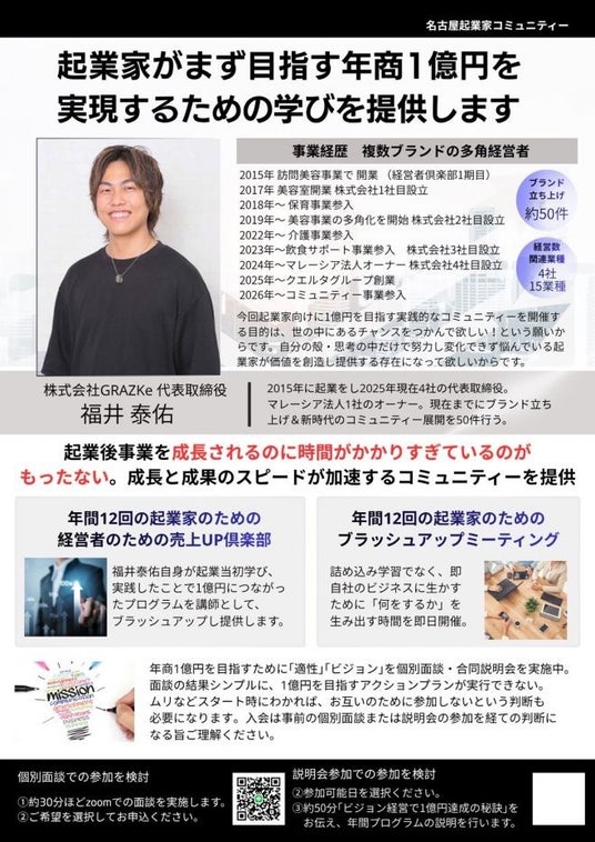 現在までにブランド立ち上げ&新時代のコミュニティー展開をしてきた経験を元に、既存事業はもちろん、新規事業に対して、自由に意見を聞ける機会となりますので、奮ってご参加ください!