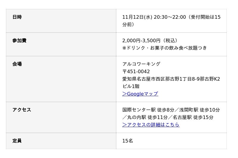 会場は、愛知県名古屋市にあるアルコワーキングというコワーキングスペース(カフェのようなお店)です。