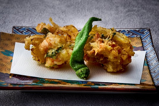 さっくりと揚げたかき揚げは、海老と蟹の甲羅を香ばしく焼き上げ、細かく砕いて塩と合わせた料理長特製の塩を添えてご提供。ズワイ蟹、甘海老のうまみをそのまま楽しむもよし、特製の塩でさらに海老と蟹の風味を楽しむもよし、という一品です。