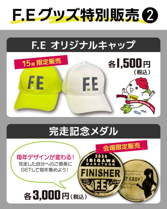 ・F.Eオリジナルキャップ 15個限定販売 2種類 各1,500円(税込)