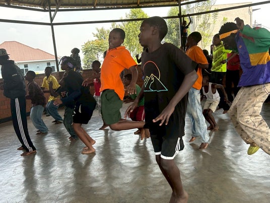 ルワンダのパートナー団体African Mirror。なかよし学園は音楽やダンスで若者たちの居場所をつくっている。このようなパートナー団体のもとに東安中学校の合唱が届く。