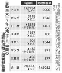 車7社、計7827億円減益 9月中間 米追加関税響く 3社赤字転落
