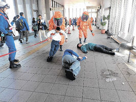 化学テロ想定対応確認 美濃太田駅 消防と警察が訓練