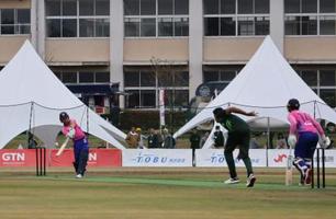 10月下旬、小雨の中、佐野市国際クリケット場に、くぐもった打球音が響いた。日本代表選手と外国人経験者らが参加した「エンバシー・カップ」。同市に本部を置く日本クリケット協会が、インドなど9カ国の在日大使館の協力を得て開催した。観客は試合の他、体験コーナーや各国の食べ物を楽しんだ。