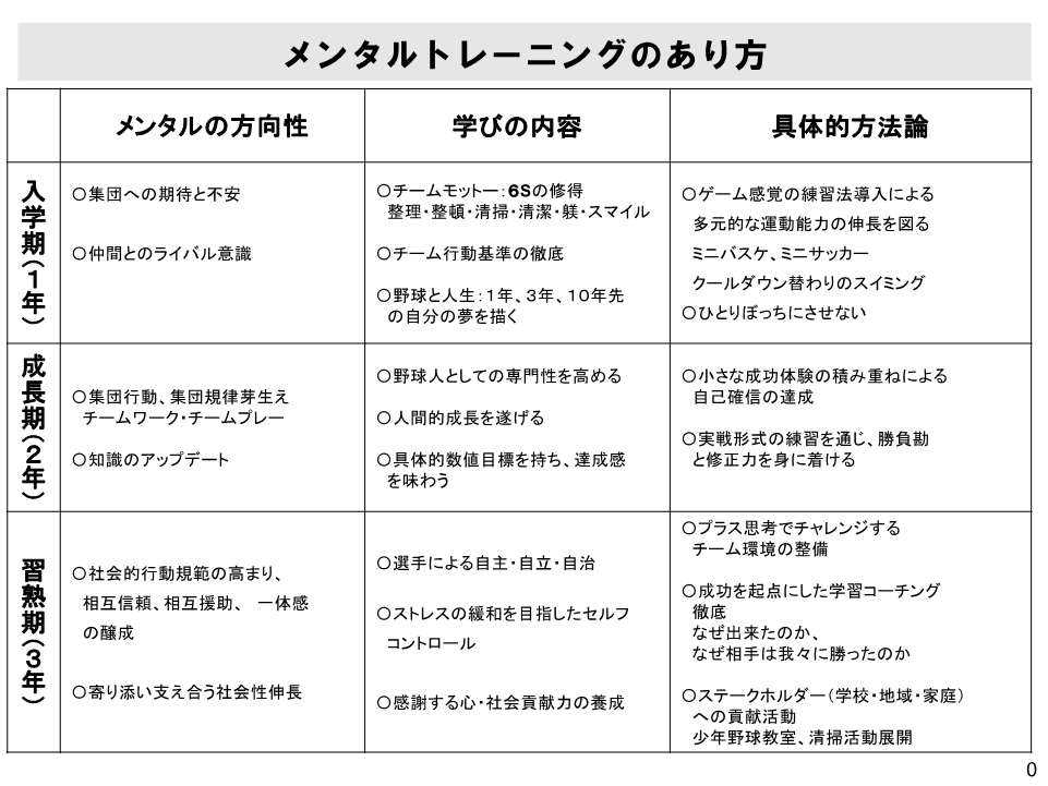 ※判断力・研究心の芽生えを大切にする。選手が下した判断を頭ごなしに叱ることは避ける。その判断を下すにいたった動機、過程を尊重し、よい面は認め、伸ばす。