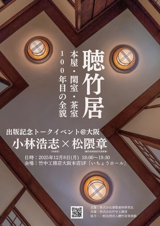建築・住宅・インテリア・資格等の専門書を発行する株式会社建築資料研究社(所在地:東京都豊島区、代表取締役社長:馬場栄一)は、小林浩志(著)、松隈章(監修)『聴竹居--本屋・閑室・茶室 100年目の全貌』を刊行しました(2025年6月11日に全国書店で発売)。