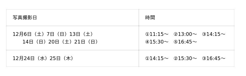 会期中の土日と12月24日(水)、25日(木)には、〈エンゼル広場〉にサンタクロースも来場します。一緒に写真を撮って、思い出に残るクリスマスのひとときをお楽しみください。
