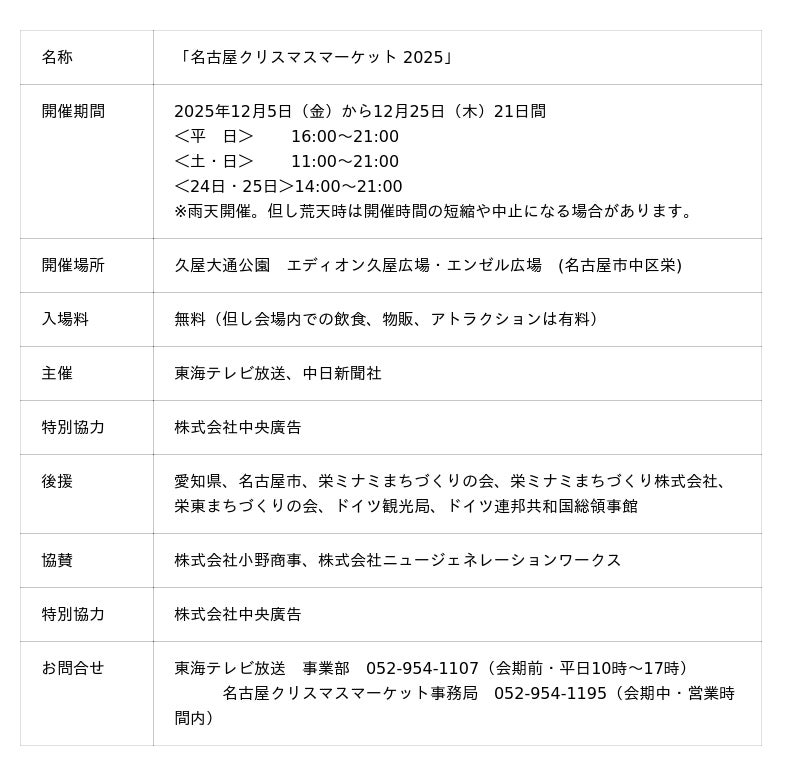 2025年12月5日(金)から12月25日(木)まで、栄の久屋大通公園(エディオン久屋広場・エンゼル広場)にて開催いたします。