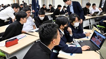 岐阜市大縄場の岐阜高校で、インターネット上の仮想空間「メタバース」を活用した投資体験授業が行われた。生徒らが仮想世界の中を旅しながら、ゲーム感覚でお金の動きを体験し、投資における情報の大切さを学んだ。