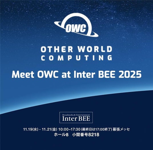 Other World Computing(OWC)マーケティング担当副社長のChris Kooistra(クリス・コイストラ)は次のように述べています。「Inter BEEは放送・コンテンツ・プロダクション分野で世界中の革新的な才能が一堂に会する場です。そしてまさにそこがOWCにふさわしい場所だと考えています。Thunderbolt 5の登場によりこれまでにないスピード、拡張性、柔軟性をクリエイターやプロフェッショナルに提供できるようになりました。新製品のOWC StudioStackやOWC Mercury Helios 5S、そして実績あるストレージ&接続ソリューションのラインアップを通じて、OWCはあらゆる現場で“創造の可能性”を新たに切り拓いていきます。