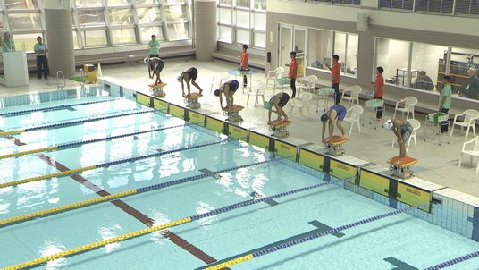 ポイントが低い順に6名ずつ200mを泳ぎます。タイムによってポイントが加算されます。
