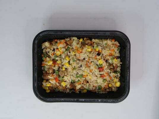 KaRuNa LUNCH BOX 彩り野菜のピラフ(Soy meat and Vegetable Pilaf)国産米をベースに、人参・パプリカ・さやいんげん・とうもろこしなど色とりどりの野菜をたっぷり使った、見た目にも華やかなピラフです。