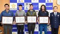感謝状を受けたのは、支配人の中林裕二さん(53)、従業員の谷口英輝さん(38)、瀧本智之さん(31)、中林颯太朗さん(24)。