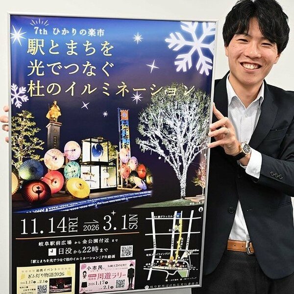 岐阜市中心市街地の夜を彩る「駅とまちを光でつなぐ杜(もり)のイルミネーション」が14日から、JR岐阜駅から金公園までの一帯で開かれる。来年3月1日まで。市や地元協賛企業、団体でつくる岐阜駅周辺活性化実行委員会が主催し、2019年から開き、今年で7回目となる。