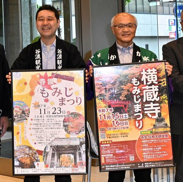 参道に約150本の紅葉が出迎える同町谷汲徳積の谷汲山華厳寺では、23日に「谷汲もみじまつり」を開く。県重要無形民俗文化財「谷汲踊」が3回上演される。15、16日には、同町谷汲神原の両界山横蔵寺で「横蔵寺もみじまつり」・・・つづきはこちら