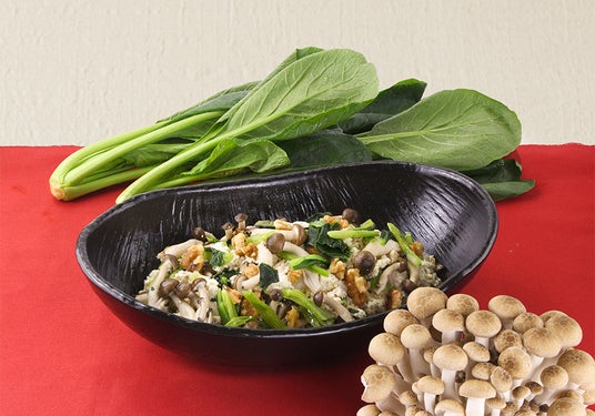 すりごまや西京味噌で味付けした白和えに、小松菜、しめじ、香ばしいくるみや山椒を加えて風味豊かに仕上げました。