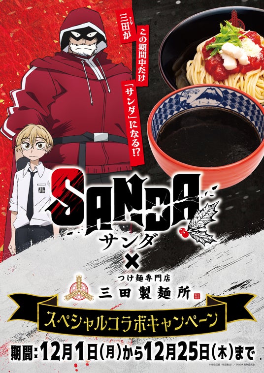 株式会社エムピーキッチンホールディングス(本社:東京都渋谷区、代表取締役:村上竹彦)が運営する「つけ麺専門店 三田製麺所」は、2025年12月1日(月)から12月25日(木)の期間中、TVアニメ『SANDA』とのコラボ商品の販売を、三田製麺所国内全店舗で実施いたします。