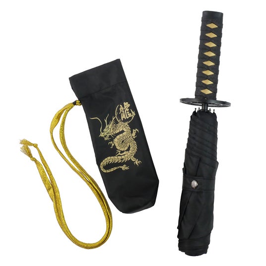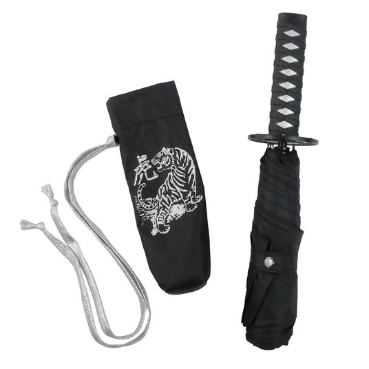 脇差(短い日本刀)の柄を模した持ち手が特徴の折りたたみ刀傘です。