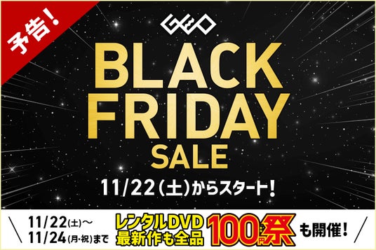 株式会社ゲオホールディングス(本社:愛知県名古屋市中区、代表取締役社長執行役員:遠藤結蔵)のグループ会社である株式会社ゲオストア(本社:愛知県名古屋市中区、代表取締役社長:濱野敏郎)は、2025年11月22日(土)から2025年11月30日(日)までの期間、『GEO BLACK FRIDAY SALE 2025』を全国のゲオショップ・ゲオモバイル約1,000店舗およびゲオオンラインストアで開催します。また、2025年11月22日(土)から2025年11月24日(月・祝)までの期間は、『レンタルDVD 100円祭』も開催します。