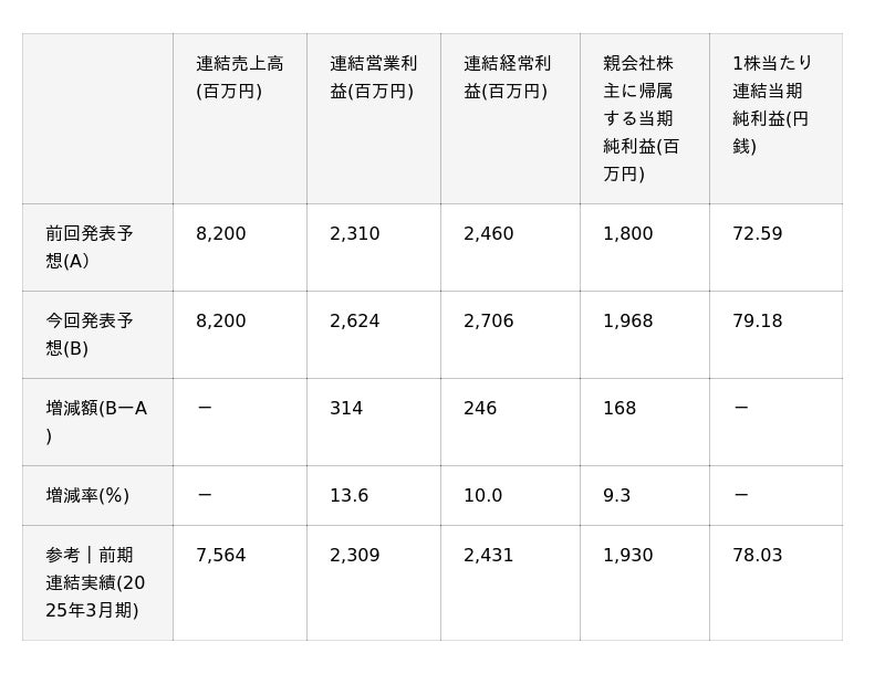 2026年3月期第2四半期連結累計期間の売上高は、通期連結売上高予想に対する進捗度は47.5%と、順調に推移いたしました。利益面では、全社的な品質管理の強化や付加価値生産性向上の取り組みの成果により、売上原価率の改善や販売管理費の抑制等が進み、営業利益・経常利益・親会社株主に帰属する当期純利益はいずれも当初の計画を上回りました。