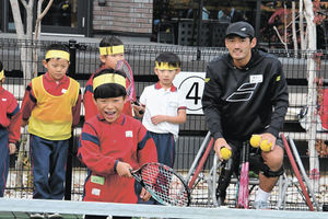 車いすテニスの荒井選手と園児が交流 笠松町で教室