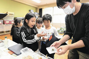 席田小で県環境教育推進授業 珍しい昆虫にドキドキ タガメなど50種 生物多様性を考える