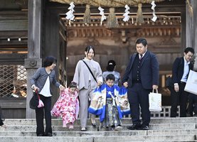 子どもの健やかな成長を願う「七五三」の15日、岐阜市伊奈波通の伊奈波神社は七五三詣での参拝客でにぎわった。