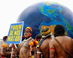 【ベレン共同】国連気候変動枠組み条約第30回締約国会議(COP30)が開かれているブラジル北部の都市ベレンで15日、地球温暖化対策の強化や、アマゾンの熱帯林保護を訴える先住民らが大規模なデモ行進をした。「アマゾンを守ることは、命を守ることだ」「森の民は地球の守護者」と書かれたプラカードを掲げて街中を練り歩いた。