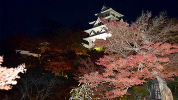 奥美濃の紅葉の名所として知られる岐阜県郡上市八幡町の郡上八幡城で15、16日、夜のライトアップがあり、赤や黄に色づいた木々と白亜の天守閣が闇夜に浮かび上がった。次回は...