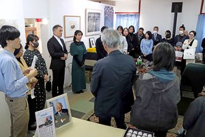 岐阜県揖斐郡池田町草深の極小美術館で16日、最後の展覧会となる、ともに画家の中風明世さん(65)=岐阜市=と片岡美保香さん(33)=山県市出身、名古屋市=の二つの個展が始まった。4日に亡くなった代表の長澤知明さんを悼む美術関係者100人超が訪れ、現代美術の未来のために力を尽くした遺志を受け継いでいく決意の声が聞かれた。