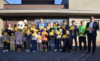 FC岐阜、地域を守る防犯ステッカー ホーム周辺の岐阜市・鷺山2700世帯に配布