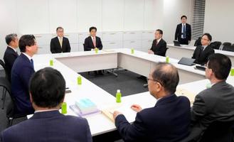 自民の鈴木俊一、維新の中司宏両幹事長も東京都内で会談し、中司氏は定数削減を巡り「自民内をまとめて前向きに取り組んでいただきたい。議論を加速させてほしい」と申し入れた。